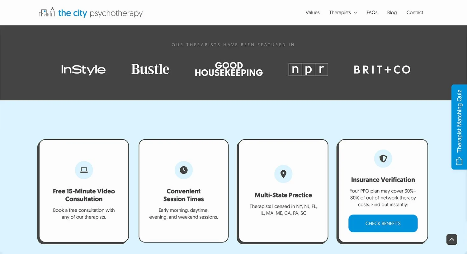 I designed and built a custom WordPress website for The City Psychotherapy, a New York-based virtual therapy practice. I developed the site’s structure, visual design, and user experience to ensure clarity and accessibility for prospective clients. Working closely with the practice’s team, I crafted content placement, optimized navigation, and integrated seamless connections to external appointment and contact pages. The final result is a cohesive, user-friendly website that reflects the practice’s professional and welcoming approach while facilitating client engagement. thecitypsychotherapy.com